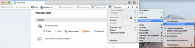 Es wird ein Thunderbird Plugin benötigt, um alle Funktionen des Mail-Servers zu verwenden. Hierfür öffnet ihr bitte den Thunderbird (wie oben besprochen, die initiale Mail-Konto Einrichtung abbrechen).